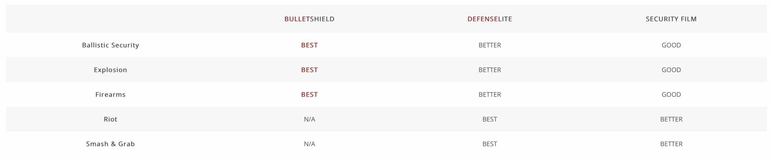 See How Bulletshield Compares